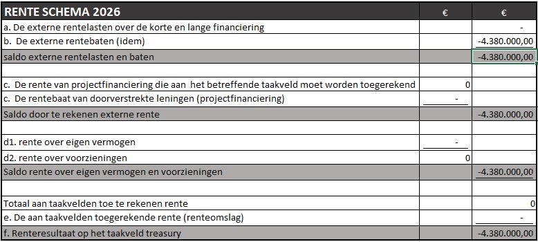- De manier waarop rente aan investeringen, grondexploitaties, en taakvelden wordt toegerekend.